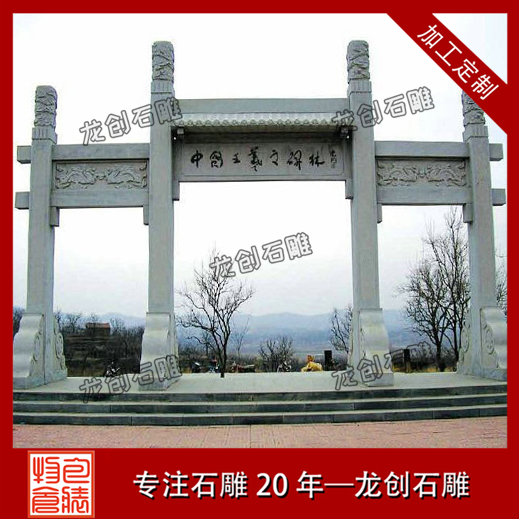 4、現代石雕牌坊要注意設計元素的選用。在石雕牌坊設計方面我們可以采用一些西方古代建筑的元素,這樣中西合璧更能夠體現出現代石雕牌坊的特色來。在不經意間采用這種有特色的建筑,讓石雕牌坊能夠在細節上取勝。
