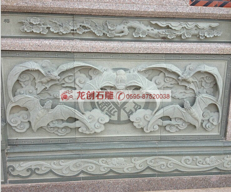 吉祥浮雕裝飾和室內(nèi)外浮雕墻藝術(shù)設(shè)計(jì)制作 高浮雕與淺浮雕兩種形式常常互相結(jié)合對(duì)應(yīng)。例如云崗石窟中的釋迎坐佛,主體近似圓雕,而背面墻上的飛天、云紋均采用低浮雕手法處理。