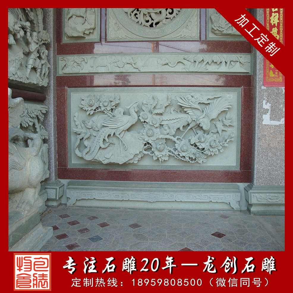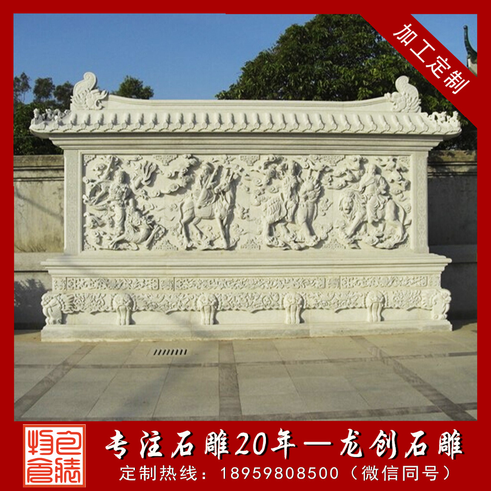 石材浮雕是用石材雕刻而成的工藝品,雕刻者在一塊平板上將他要塑造的形象雕刻出來,使它脫離原來材料的平面。浮雕是雕塑與繪畫結(jié)合的產(chǎn)物,用壓縮的辦法來處理對象,靠透視等因素來表現(xiàn)三維空間,并只供一面或兩面觀看。