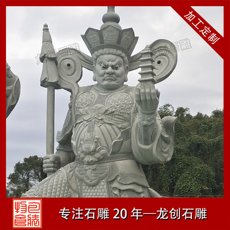 石雕四大天王是佛教中的護(hù)法神,常被雕刻成石像用于寺廟、道觀等宗教場所的裝飾和守護(hù)。這四位天王分別是: