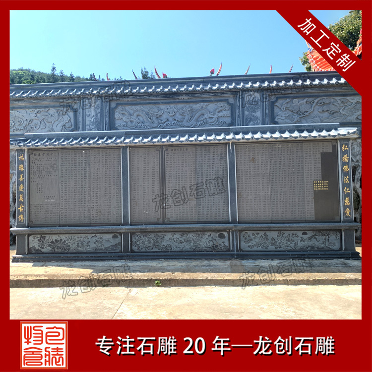 設計特點:通常由一塊長方形的石頭精心雕刻而成,上面刻有詳盡的文字內容,如表彰對象的姓名、事跡、貢獻等,以及相關的圖案或浮雕,以生動形象地展現(xiàn)功德事跡的輝煌與偉大。