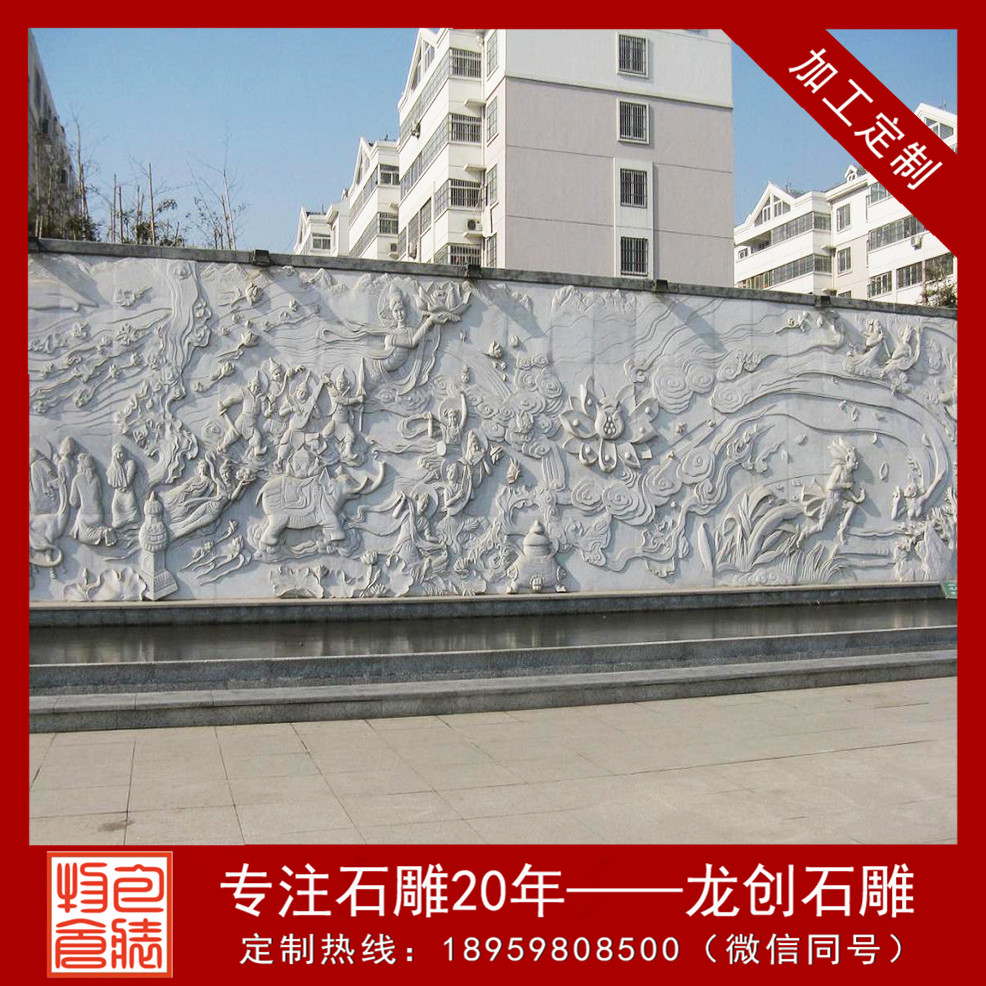 相對修建物來說,石材浮雕照壁制造裝修的體量較小,起到必定的裝修和運用功用。浮雕墻制造藝術(shù)的使用大都表現(xiàn)在景象小品中裝修性和展示型小品的規(guī)劃上,并以修建或者小品為依附的壁面,如照壁浮雕、浮雕文明墻等規(guī)劃,使用到景象規(guī)劃中的浮雕墻藝術(shù)作品大都是表現(xiàn)出一般雕塑、繪畫所不能反映的藝術(shù)方式,浮雕墻制造藝術(shù)在景象規(guī)劃中的體裁內(nèi)容大都采用人物、多種事件、故事神話或地方典故等敘事性體裁內(nèi)容,經(jīng)過浮雕墻制造藝術(shù)加以表現(xiàn)。由此可見,用于園林景象中的浮雕墻制造藝術(shù)作品一般情況下會結(jié)合或者是弘揚地域歷史文明而進行鎮(zhèn)密構(gòu)思創(chuàng)作的,有的則會經(jīng)過含蓄、含蓄的表現(xiàn)手法來暗示著特定的文明內(nèi)涵。