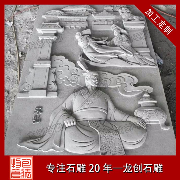 惠安龍創石雕工藝有限公司專業的青石人物石浮雕雕刻廠家,提供青石浮雕、花崗巖浮雕、大理石浮雕等多種天然石材浮雕加工制作,人物、佛像、花草鳥獸等各種圖案皆可定制。公司常年承接寺廟浮雕、祠堂浮雕、建筑迎門墻、景區戶外大型建筑外墻石材浮雕加工制作。
