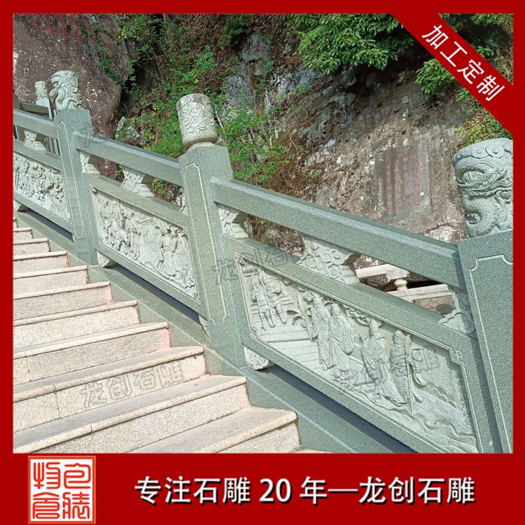石材浮雕是一種在天然石材上表現浮雕技法的工藝品,在人們的生活中隨處可見。如別墅墻浮雕、寺廟浮雕、石材浮雕欄桿等。今天我們要了解的是石材浮雕欄桿制作及雕刻圖案,現在石欄桿和浮雕的結合使安裝區域多了一道風景線。