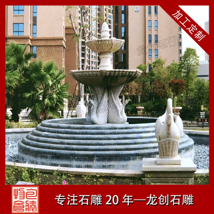 園林景觀石雕噴泉水缽雕塑是一種石材做成的盆狀或者罐狀的石雕作品,一般來說周邊有雕刻的紋路以及雕刻的附加飾品,然后組合成一個比較大的裝水,儲水的容器,并且部分石雕噴泉雕塑利用水壓把水從石雕噴泉雕塑的上端噴或者流出,形成一種特別的景象的石雕產品。石雕噴泉雕塑作為一種裝飾產品,所以一般適用于比較高檔的裝飾,不過隨著社會的發展,現在的水平高中低檔的價格可以滿足不同客戶的需求,從高端裝飾慢慢的成為了家居擺件,公司擺件,公園擺件,景區擺件等等。
