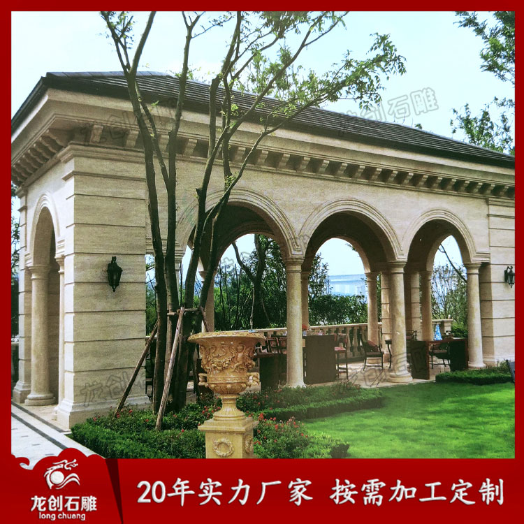 石亭子和石雕長廊連接在一起不僅能將單體建筑連成一片,還能將室內(nèi)外很好的連接起來。當(dāng)然石雕長廊走廊和石亭子走廊定制都需要好的石材才能做出別致的效果。
