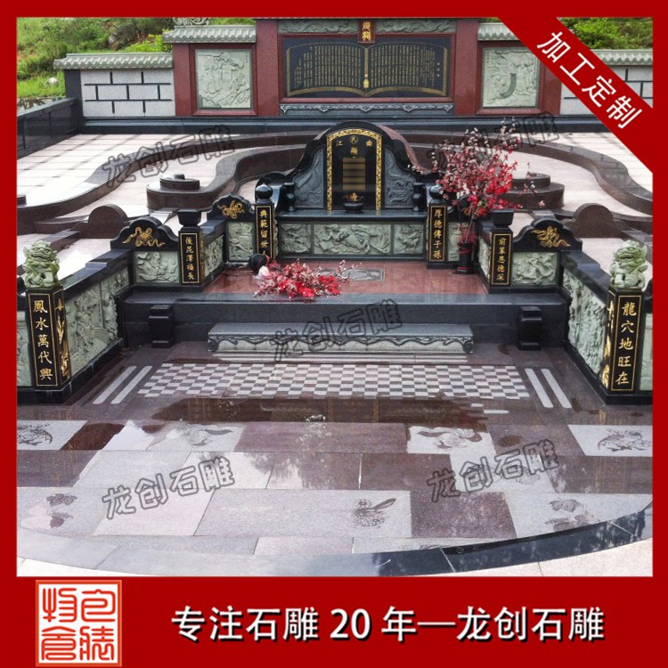 公墓石雕墓套墓圍設計的各個組件都是分開加工的,這是因為傳統墓碑的組成結構復雜,包括碑頂、主碑、碑柱、蓋板、底座、欄桿、臺階等許多不同的部分,導致墓碑的需要分為更多的部分處理,zui后還要保證每部分的加工制作順利完成,才能合成一個完整的傳統公墓墓套墓圍,這無形地增加了墓碑生產過程的復雜性。