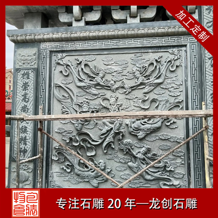 青石大型浮雕壁畫雕刻是一種非常藝術性的石雕浮雕工藝。青石是一種質地堅硬、具有細膩而光滑的質感的石頭,以其天然美觀和耐久性而備受青睞。為了讓墻面變得更加美觀和豐富,青石大型浮雕壁畫雕刻就應運而生。