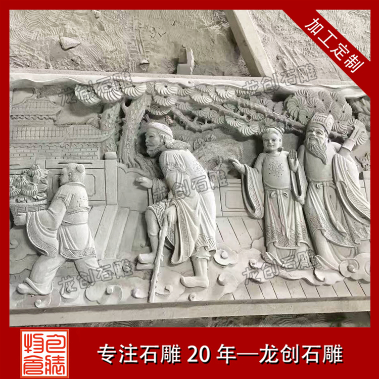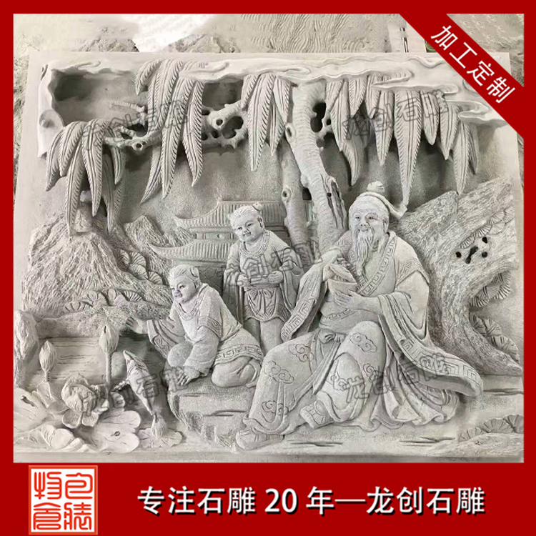 石材浮雕制作是雕刻的一種,雕刻者在一塊平板上將他要塑造的形象雕刻出來,使它脫離原來材料的平面。浮雕是雕塑與繪畫結合的產物,用壓縮的辦法來處理對象,靠等因素來表現三維空間,并只供一面或兩面觀看。浮雕一般是附屬在另一平面上的,因此在建筑上使用更多,用具器物上也經常可以看到。由于其壓縮的特性,所占空間較小,所以適用于多種環境的裝飾。