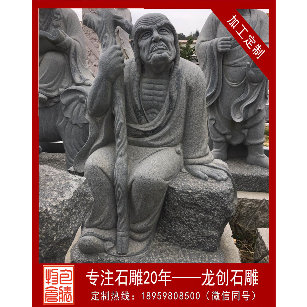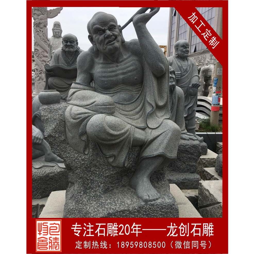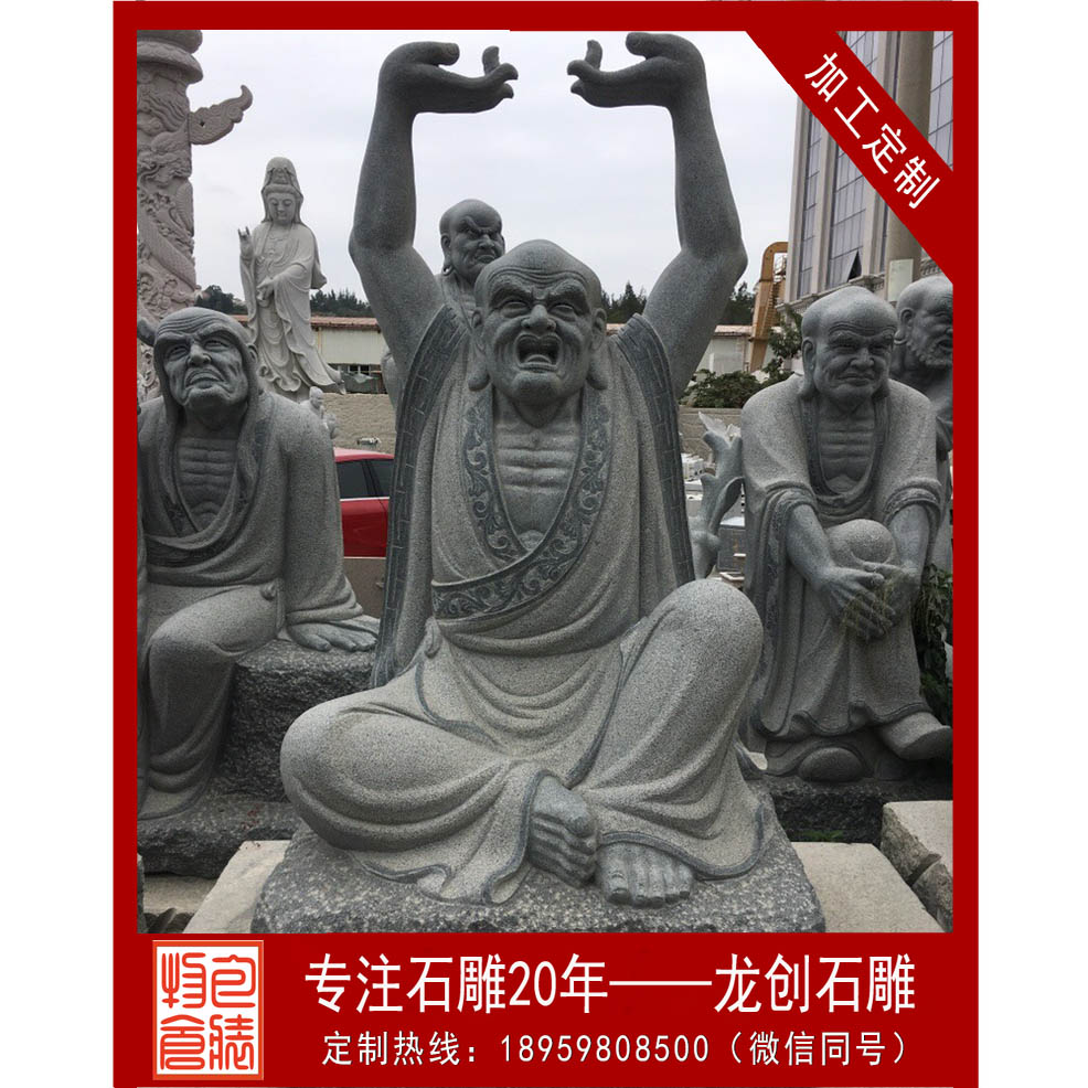 福建石雕十八羅漢廠家——龍創(chuàng)石雕,定制石雕十八羅漢像的外觀形象時(shí),遵循經(jīng)典的十八羅漢造像雕塑時(shí),也可適當(dāng)考慮當(dāng)代人或各個(gè)地方的審美。根據(jù)佛像大小,明確所需要使用的石材量。資深的雕刻工匠可以使用最少的石材,高效利用起每一塊石料,同時(shí)還能保證實(shí)物的美觀度。確定石料材質(zhì)。根據(jù)客戶的外觀需求,確定石料的顏色和材質(zhì)。不同的石料顏色和價(jià)格都會(huì)有較大的差異,因此在雕塑石雕佛像前務(wù)必要確定所選用的石料,以達(dá)到客戶的預(yù)期效果。