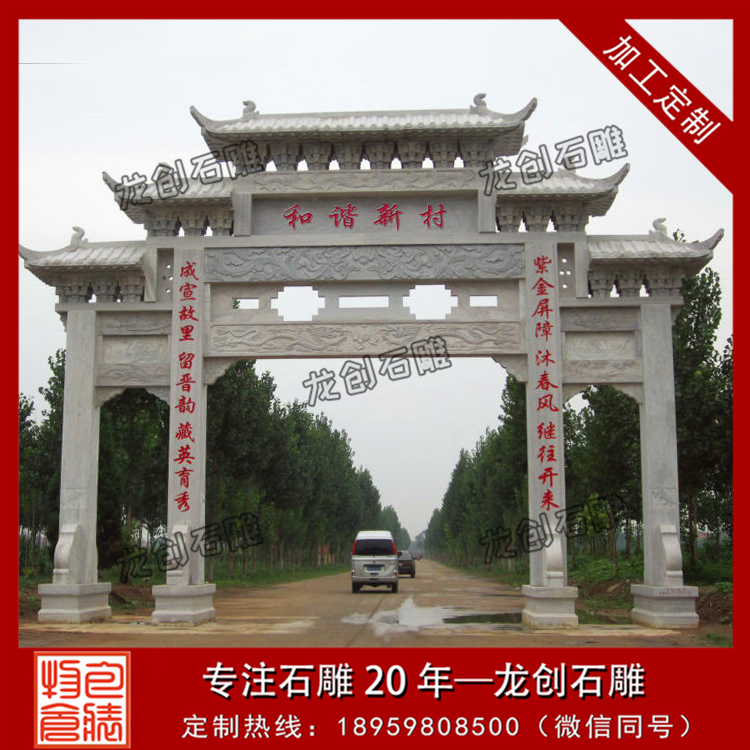 惠安龍創(chuàng)石雕直銷農(nóng)村石牌坊,關(guān)于農(nóng)村石牌坊價格,歡迎來電咨詢。